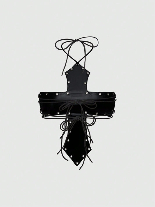Gothic Velvet Studded Pentagram Lace-Up Bralette