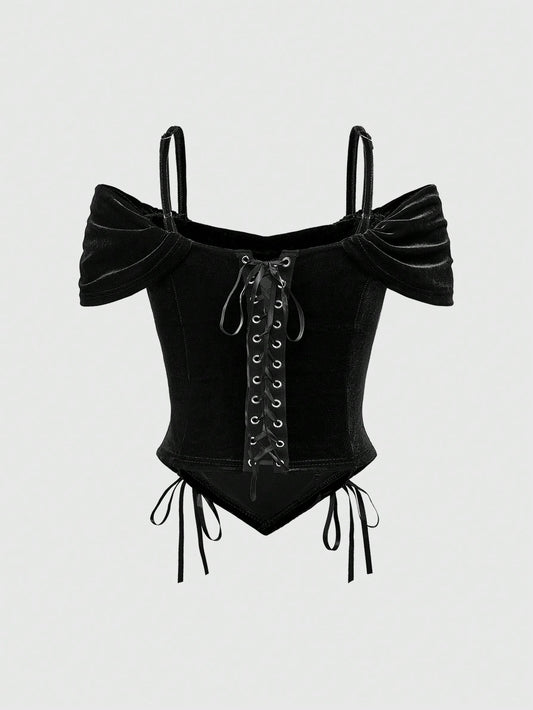 Gothic Grommet Decor Off-Shoulder Velvet Cami Top