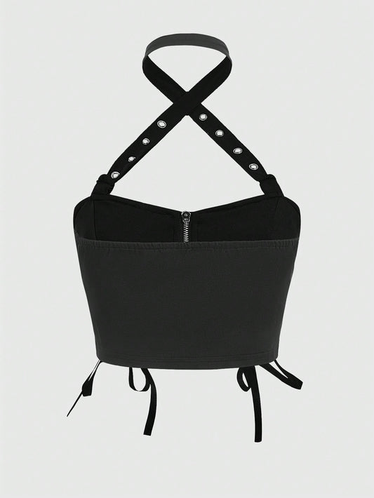Goth Metal Grommet Bandage Zipper Crop Cami Top