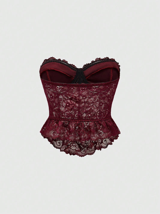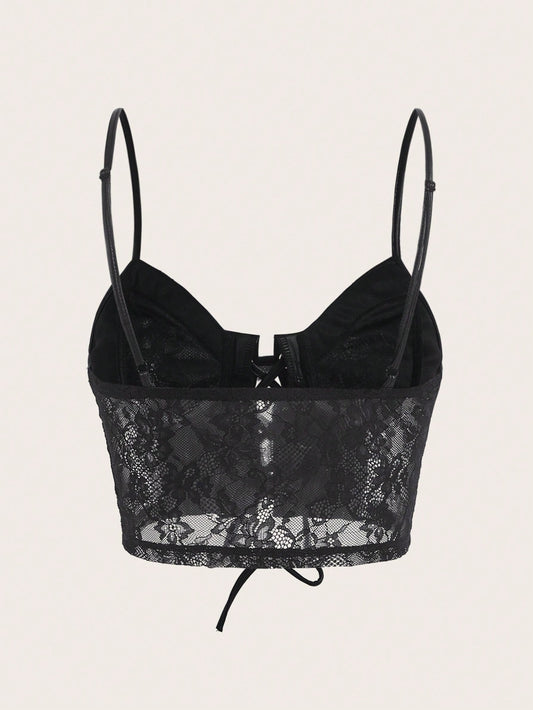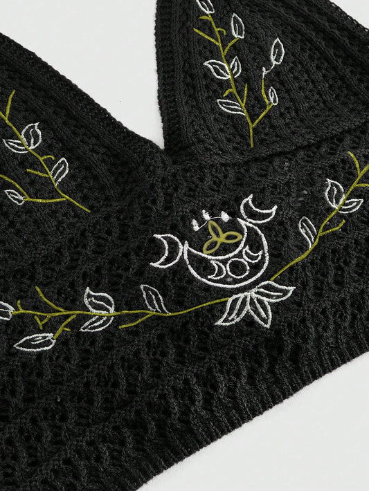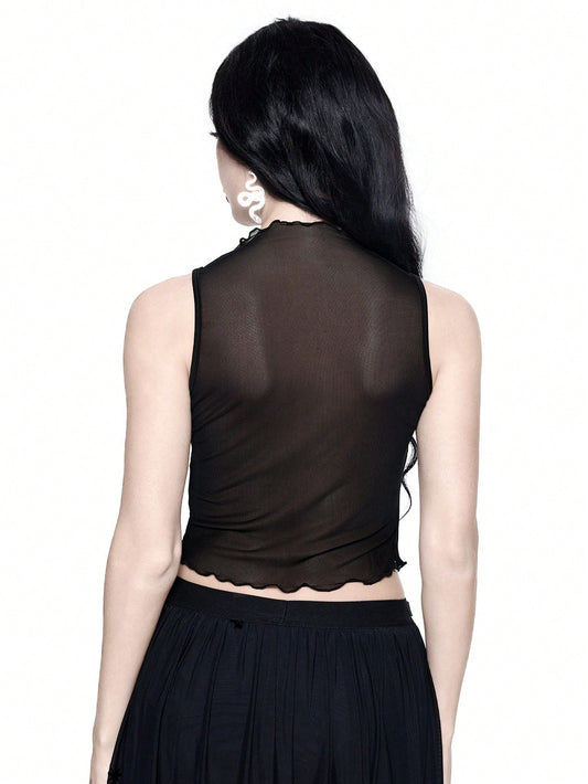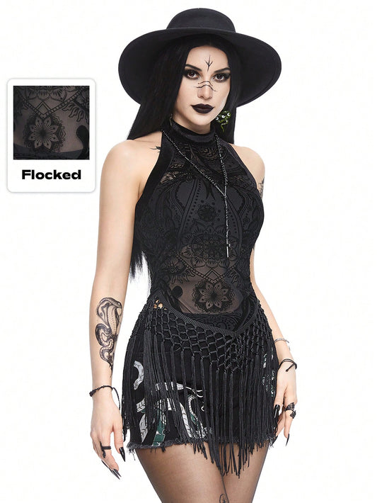 Gothic Boho Mesh Floral Tassel Halter Tank Top