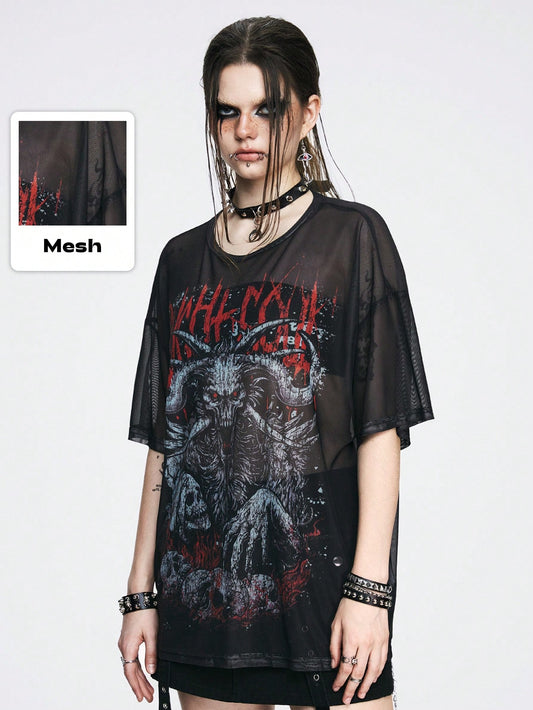 Grunge Punk Occult Mesh See-Through Loose T-Shirt
