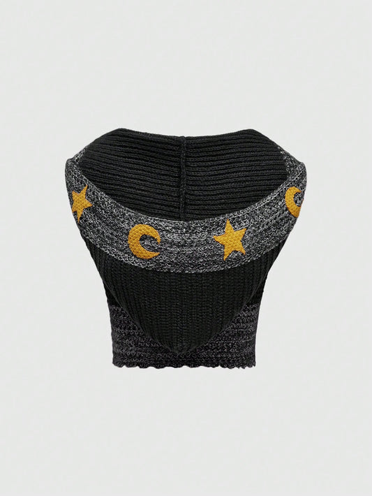 Moon and Star Crocheted Hooded Sleeveless Crop Top