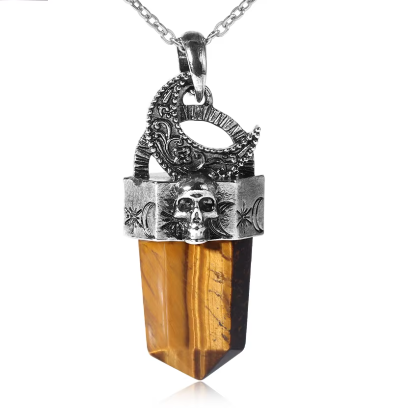 Unleash your inner rebel with the Crescent Moon Crystal Necklace. This bold statement piece isn't just an accessory; it's your personal manifesto against the mundane. Crafted for those who thrive in the shadows, it blends mysticism and a daring edge, perfect for unapologetic souls who defy conformity.