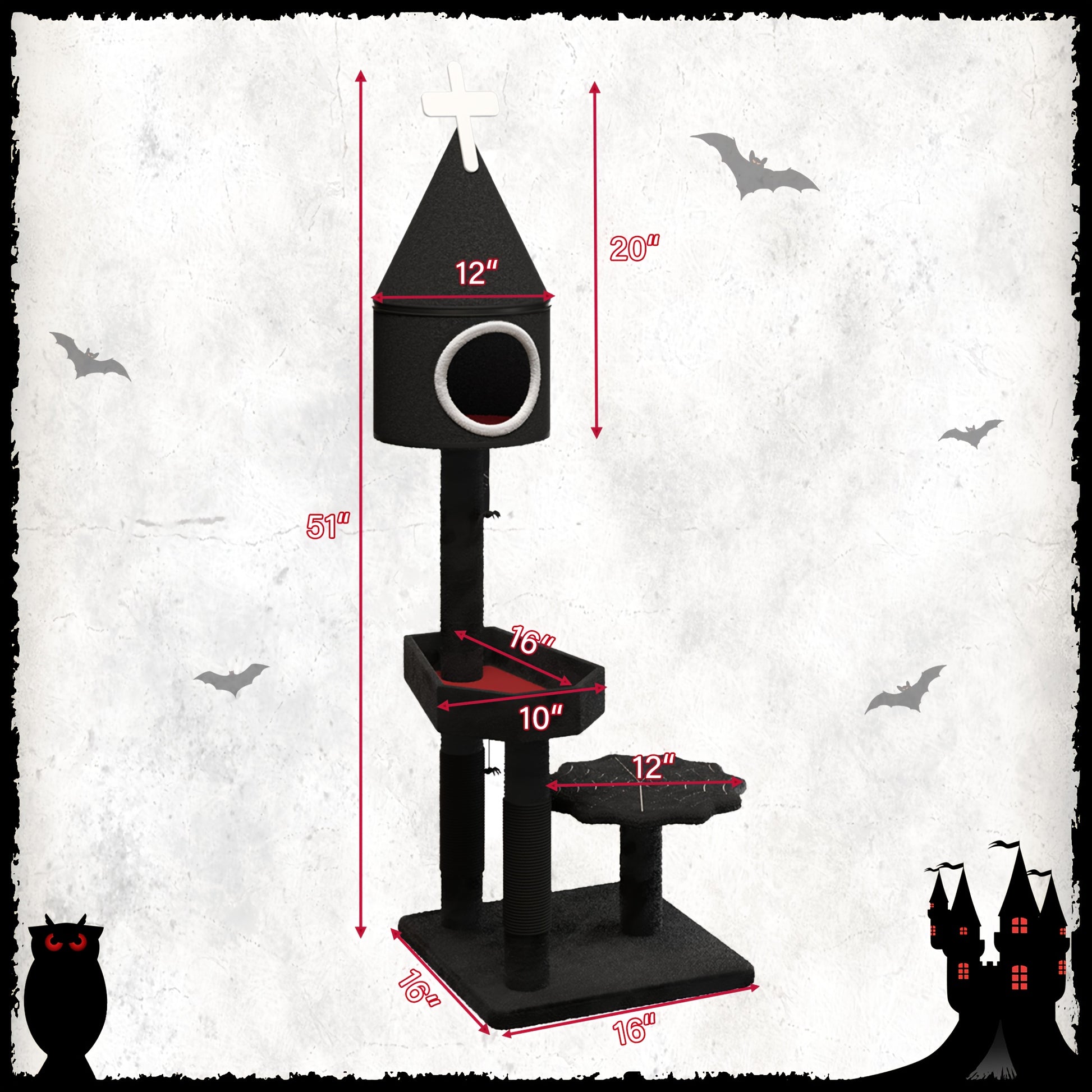 Welcome to the realm of the Gothic Cat Tree—where your feline overlords can reign supreme! This isn't just a cat tree; it's a dark sanctuary designed for your spirited fur demons. With its eerie aesthetic, this throne boasts: