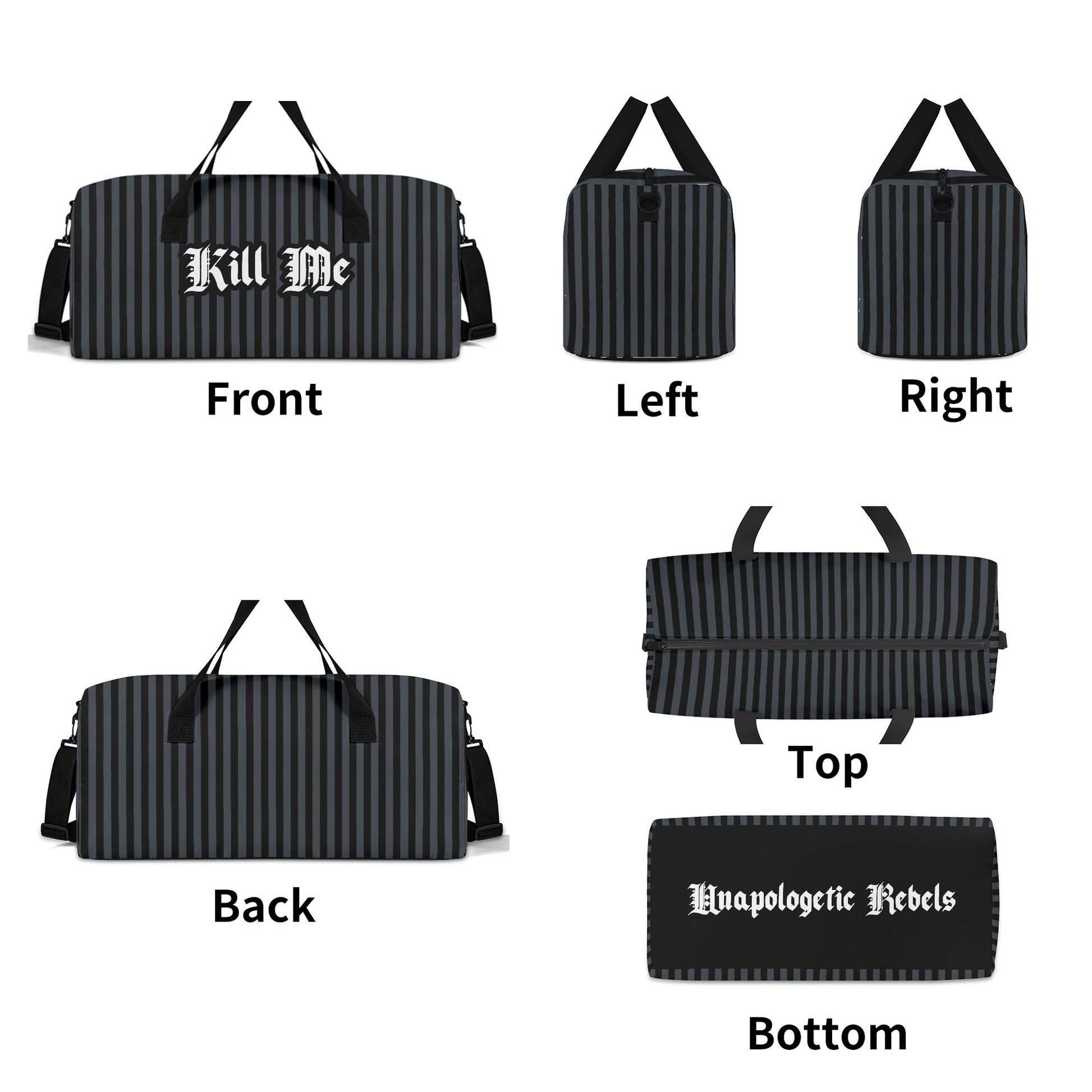 Step into the shadows with the Kill Me Duffle Bag—your ultimate sidekick for chaos and rebellion. Made from tough flannel twills polyester, this bag isn't just functional; it's a statement.