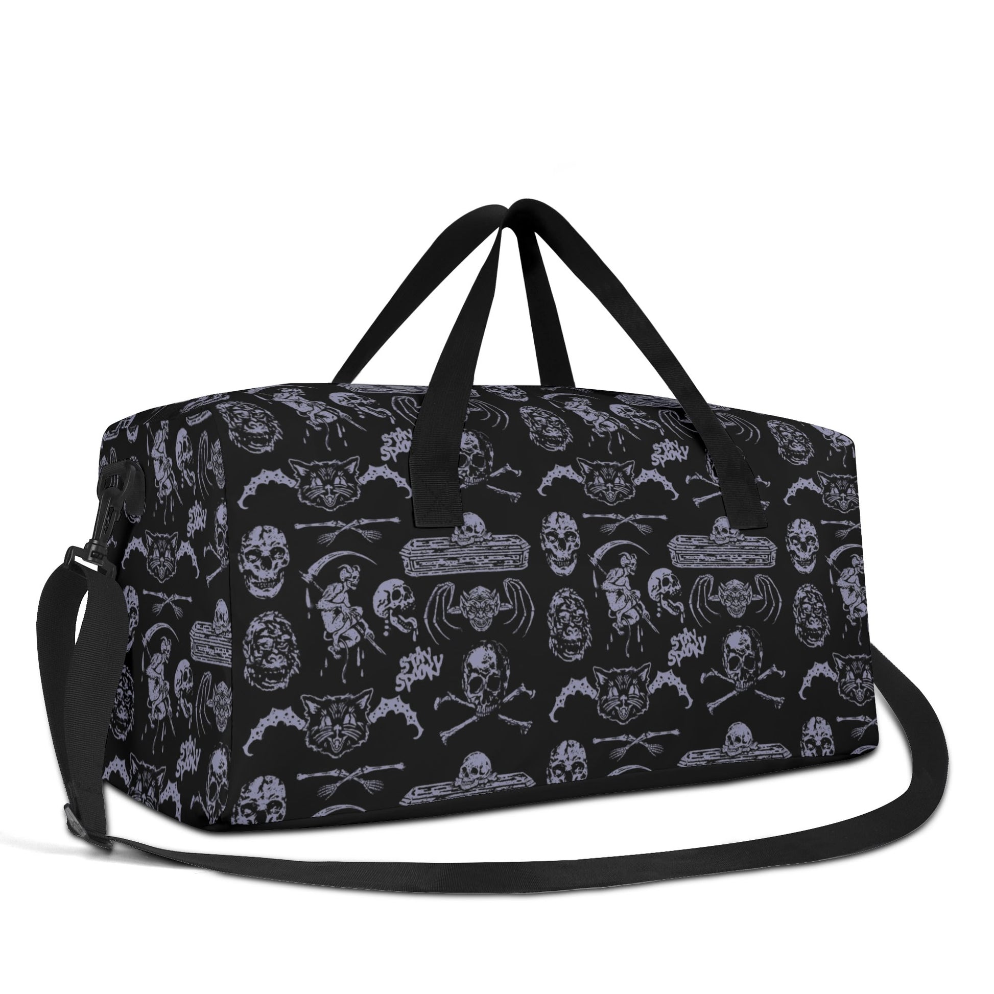 Unleash your inner spirit with the Stay Spooky Duffle Bag! Made from top-notch flannel twills polyester, this eco-conscious rebel is designed for the dark-hearted wanderers among us. With dimensions of 56.5 x 25 x 26.5 cm, it's ready to carry everything from gym gear to midnight snacks.