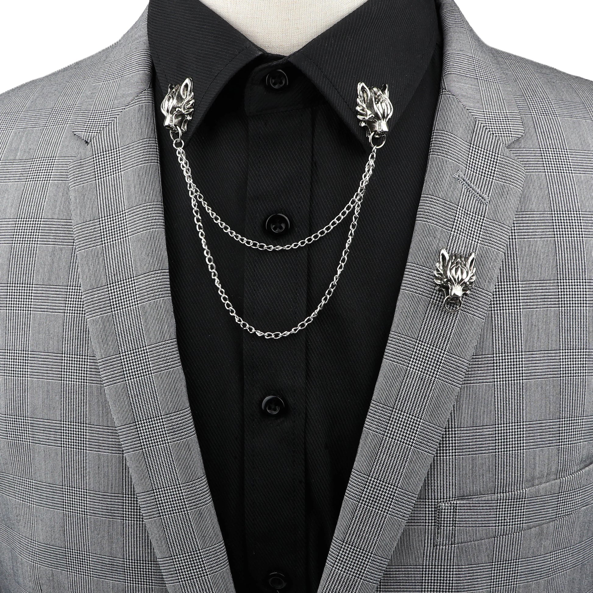 Unleash your inner rebel with the Wolf Heads Chain Tassel Collar Lapel Pin. This isn't just a pin; it's a statement that's ready to turn heads. With intricately designed wolf heads, you're channeling your dark side and challenging the mundane.