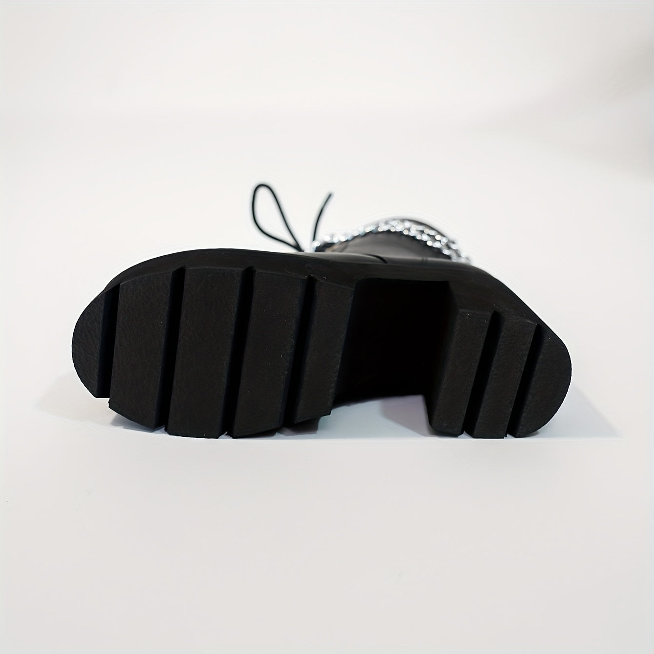 Women's Chunky Heeled Short Boots, Punk Style Chain Decor Platform Boots, Side Zipper High Heeled Boots